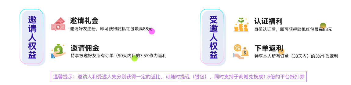 活動(dòng)期間新注冊(cè)用戶可獲得一次抽獎(jiǎng)機(jī)會(huì)(100%中獎(jiǎng)),手機(jī)/京東卡/紅包...等你來領(lǐng)!新/老用戶均可通過邀好友注冊(cè),獲得更多抽獎(jiǎng)機(jī)會(huì),并同享邀請(qǐng)權(quán)益(共享訂單10.5%返利)。