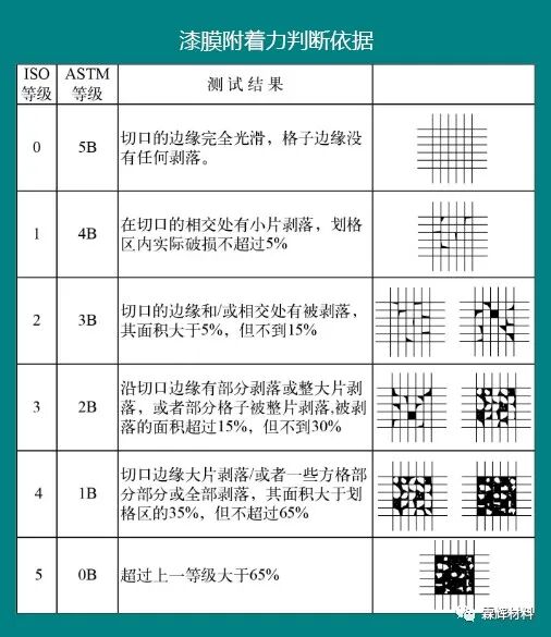 百格測(cè)試是漆膜附著力測(cè)試最常見的一種方法,按照國際標(biāo)準(zhǔn),可分為6個(gè)等級(jí),單位為0B、1B、2B、3B、4B、5B,等級(jí)越高,要求越嚴(yán)格,如果客戶要求是5B時(shí),表示漆膜不能有任何脫落。