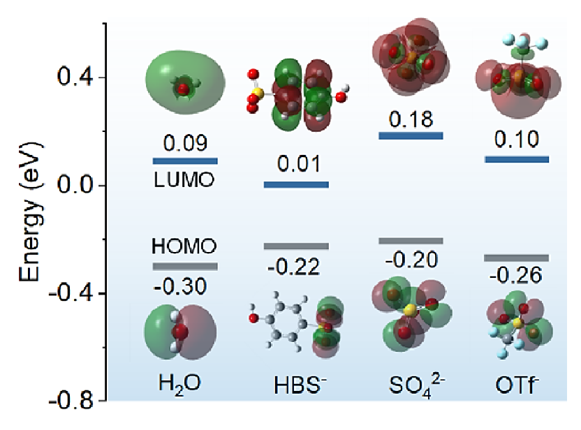通過計(jì)算陰離子表面的靜電勢(ESP)分布來量化陰離子的極性(API),分析與水分子的結(jié)合能力,輔助優(yōu)化電解液。